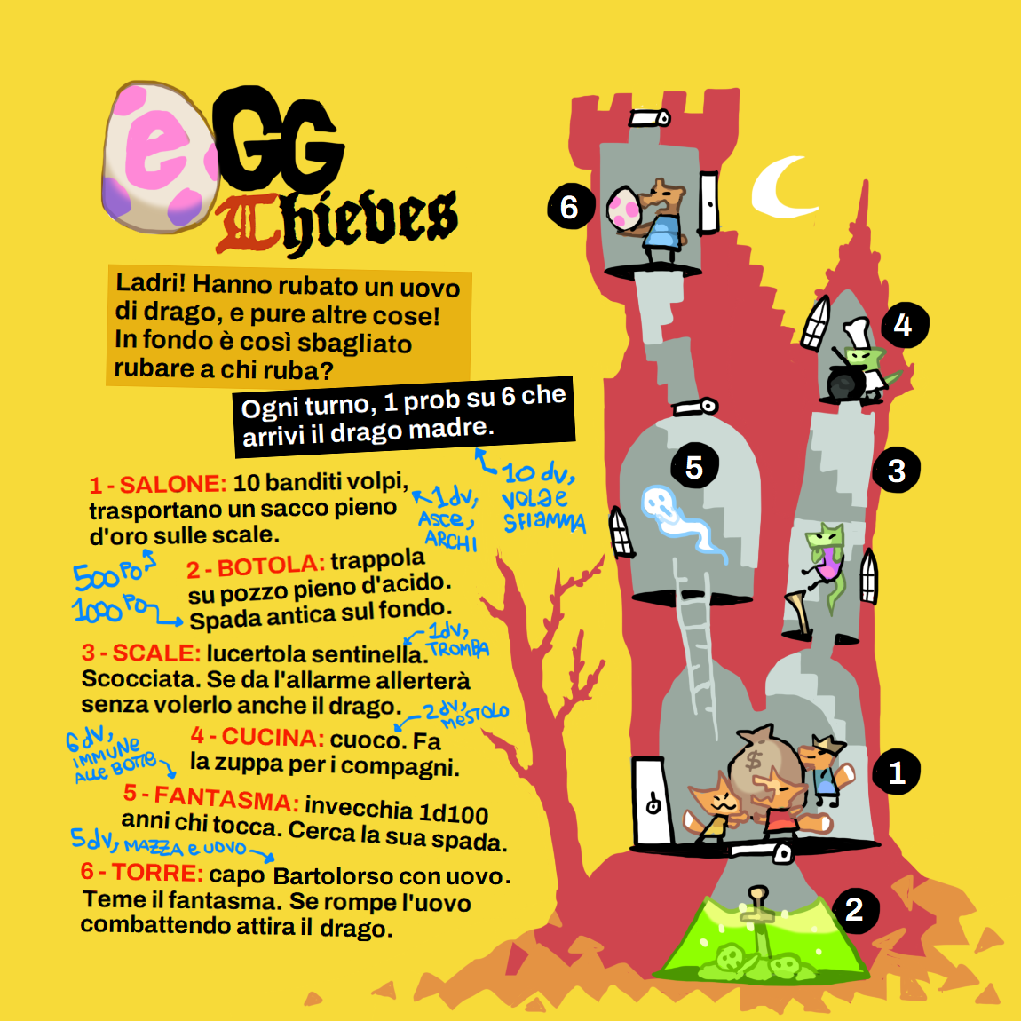 EGG THIEVES è l'avventura introduttiva ufficiale per il gdr AMAND&D (https://luca-negri.itch.io/amandd - come gioco io la quinta edizione). Qui rigorosamente stattata per essere giocata coi tuoi OSR preferiti.